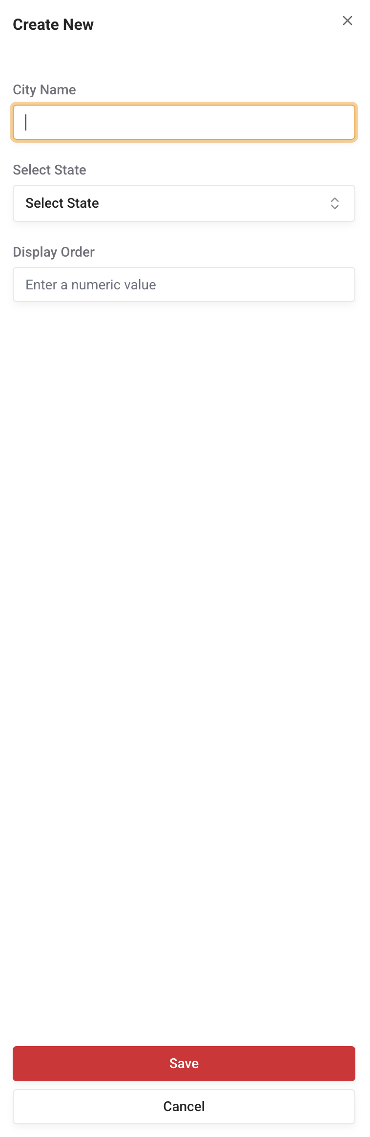 Cities created here will be available in the City dropdown in the Enquiry Form.