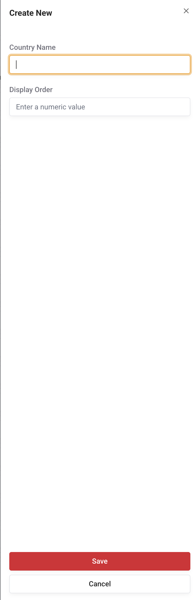 Countries created here will be available in the Country dropdown in the Enquiry Form.