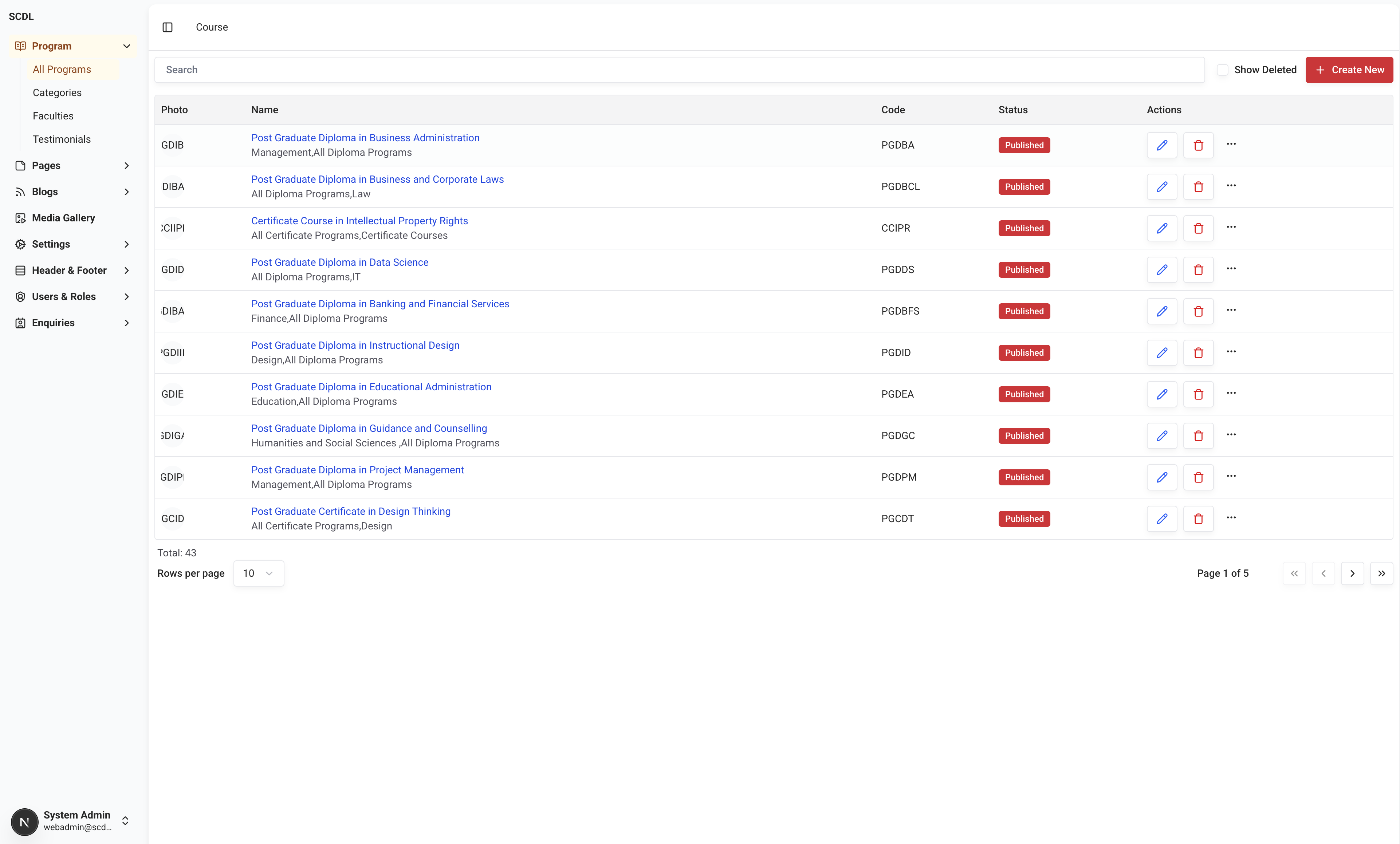 Photo | Program | Code | Status | Actions |